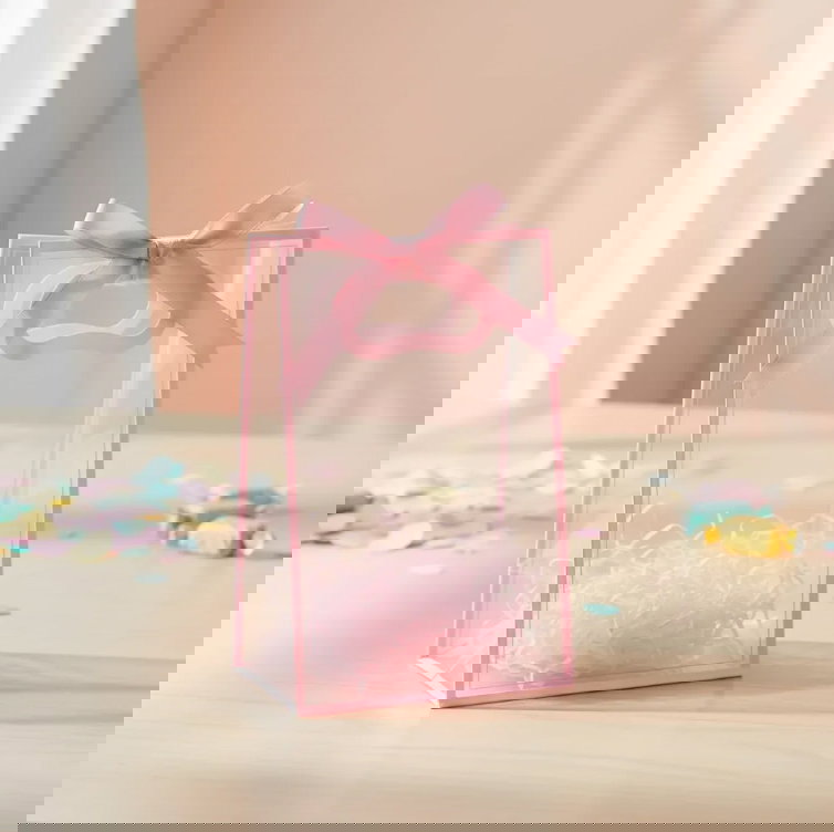 Bolsas plásticas translúcidas de calidad premium, ideales para presentar regalos o souvenirs con un toque elegante.