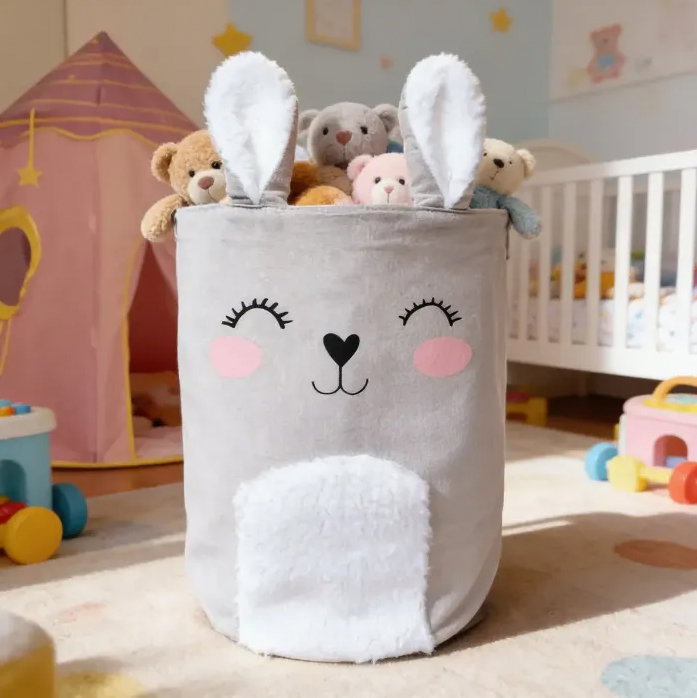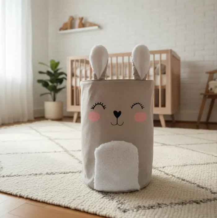 Cesto confeccionado con materiales de alta calidad y telas naturales que aportan resistencia y calidez. Su interior está cuidadosamente forrado, con delicados detalles de corderito en las orejas y la panza que suman suavidad y un acabado encantador. Versátil y funcional, es ideal tanto para organizar ropa como para guardar juguetes u otros objetos del hogar. Además de su practicidad, su diseño lo convierte en una pieza decorativa única que añade un toque acogedor y original a cualquier ambiente.