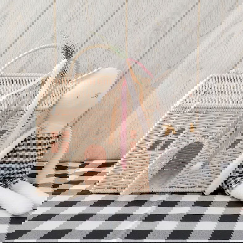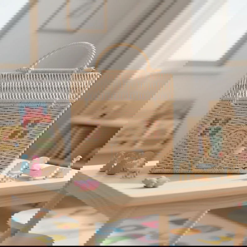 Hecha con material de alta calidad, esta cesta- casa de mimbre está diseñada para durar, es resistente al desgaste y es segura para los niños. Su encanto natural añade un toque de elegancia a cualquier entorno.