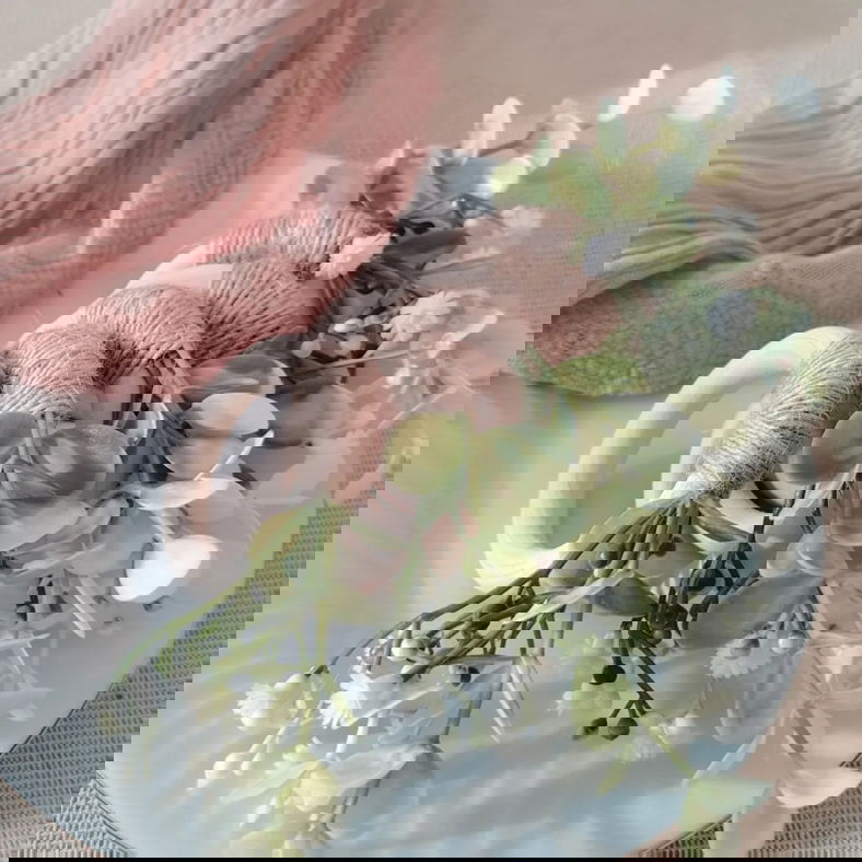 PORTA SERVILLETAS DE MADERA, EUCALIPTUS Y FLORES ARTIFICIALES